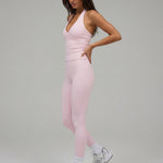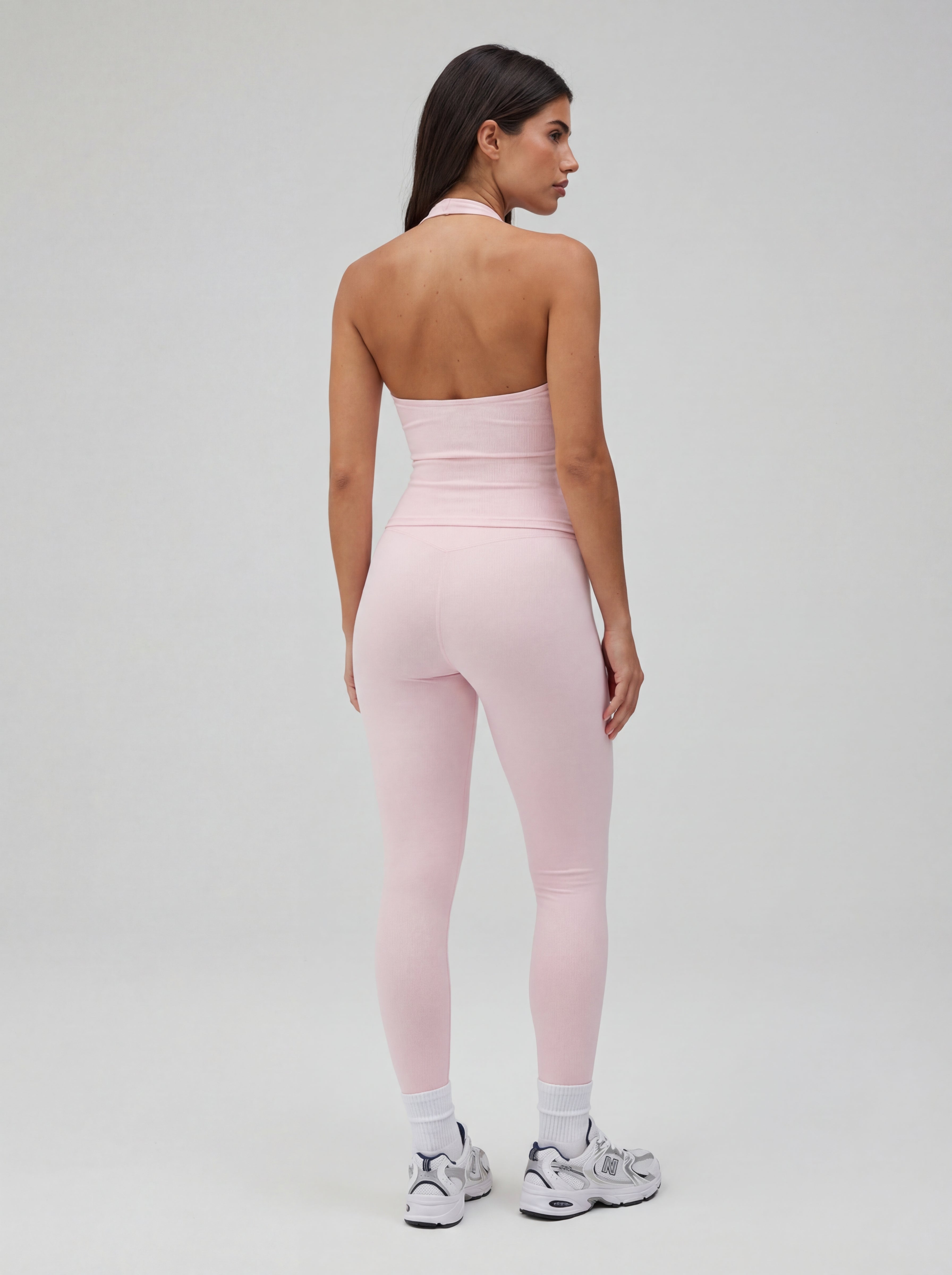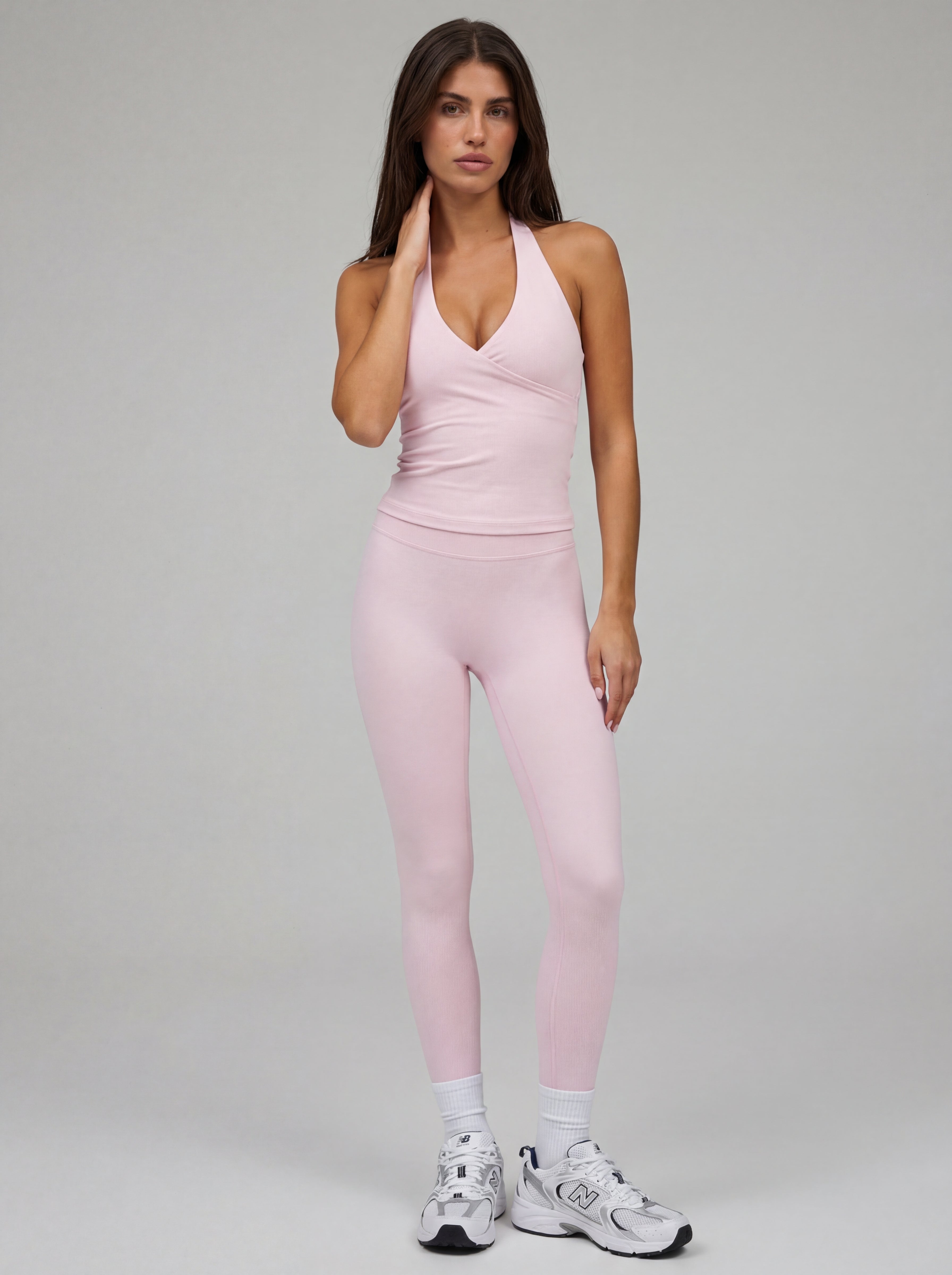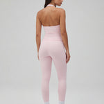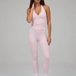 With its flattering V-neckline and minimal halter design, this piece blends a refined, feminine look with true activewear functionality.